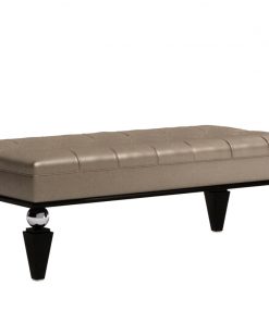 Банкетка с мягким сиденьем, обитым в технике капитоне. Фигурные ножки декорированы металлическими элементами. Наполнение: пенополиуретан. Возможны другие варианты отделки и обивки