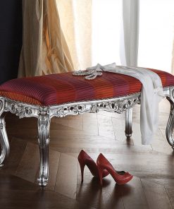 Банкетка с мягким сиденьем, обитым в технике капитоне. Декорирована резьбой. Возможны другие варианты отделки и обивки. Дополнительно можно декорировать сиденье кристаллами Swarovski