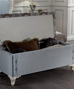 Банкетка с внутренним контейнером и резными ножками. По краям обита в технике капитоне. Возможны другие варианты отделки и обивки.