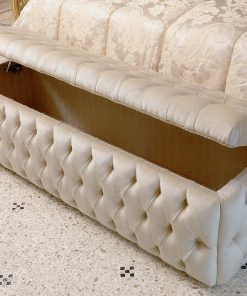 Банкетка с внутренним контейнером. Обита в технике капитоне. Возможны другие варианты обивки, в том числе в ткани клиента.