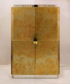4-х дверный комод с рельефным декором. Полки выполнены из стекла. Внутри бар декорирован зеркалом.