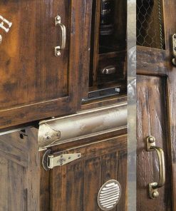Бар с раздвижными и распашными дверцами с внутренними отделениями. Декорирован оригинальными металлическими элементами. Оснащён подсветкой. В комплект также входит штопор для бутылок, отделение для охлаждения напитков и восемь бокалов для вина