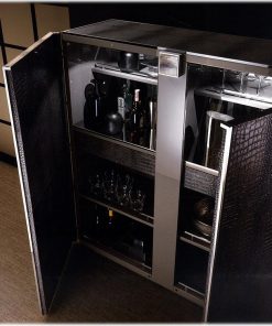 2-х дверный бар, дверцы выполнены в отделке из кожи. Варианты отделки: южно-африканское дерево Karoo или крашеная.