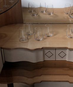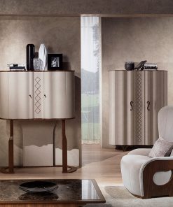 Обитый буфет с 2 распашными дверцами. С выдвижными ящиками и зеркальной стенкой внутри. Возможны другие варианты отделки и обивки.