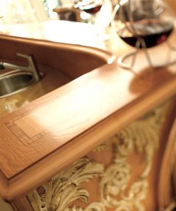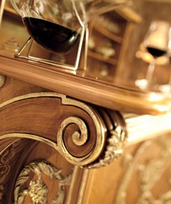 Бар с барной стойкой. Барный шкаф с открытыми полками, распашными дверцами и выдвижными ящиками. Композиция декорирована инкрустацией и резьбой. Возможны другие варианты отделки. Раковина и смесители заказываются дополнительно