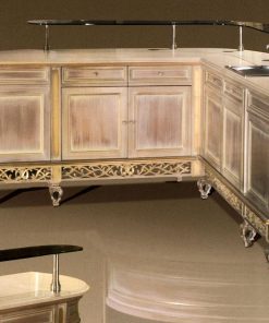Барная стойка со стеклянной полкой. Декорирована ручной резьбой. Мраморная столешница. Возможны другие варианты отделки, в том числе возможно выполнение в отделке по образцу клиента