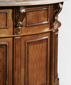 Барная стойка с мраморной столешницей. Декорирована инкрустацией и резьбой. Возможны другие варианты отделки.