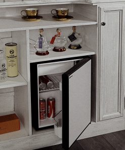 Барная стойка с открытыми полками и холодильником. Декорирована резьбой. Возможны другие варианты отделки.