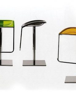 Барный стул с вращающимся оригинальным сиденьем. Структура: хромированная сталь, акрил различных цветов.