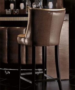 Барный стул, мягкие сидение и спинка. Наполнение — огнестойкий паралон. Возможны другие варианты обивки и отделки.