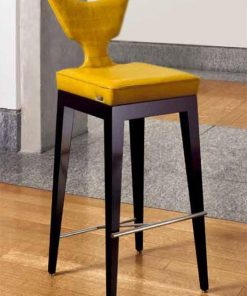 Барный стул с фигурной спинкой, мягкие сидение и спинка. Наполнение — полиуретан. Возможны другие варианты обивки.
