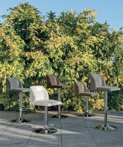 Барный стул с металлическим основанием, обитыми сидением и спинкой. Максимальная высота сидения 104 см. Возможны другие варианты обивки.