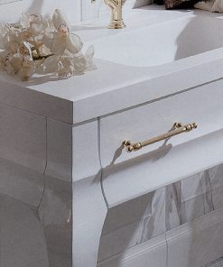 База под раковину с выдвижным ящиком и мраморной раковиной. Возможны другие варианты отделки.