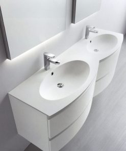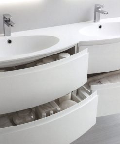 Подвесная база под раковину с четырьмя выдвижными ящиками. Предназначена для двух раковин. Каркас ящиков изготовлен из металла. Возможны другие варианты отделки. Столешница с раковинами заказывается дополнительно