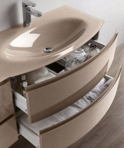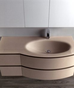Подвесная база под раковину с четырьмя выдвижными ящиками. Каркас ящиков изготовлен из металла. Возможны другие варианты отделки. Столешница с раковиной заказываются дополнительно