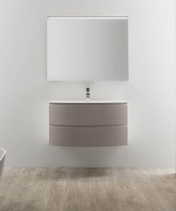 Подвесная база под раковину с двумя выдвижными ящиками. Каркас ящиков изготовлен из металла. Возможны другие варианты отделки. Столешница с раковиной заказываются дополнительно
