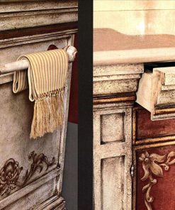 4-х дверная база под раковину с 4-мя ящиками. Столешница выполнена из травертина. Декорирована росписью ручной работы.
