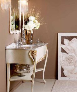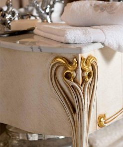 База под раковину с полкой и 1-м ящиком. Мраморная столешница в стоимость не включена. Декорирована резными элементами. Возможны другие варианты отделки.