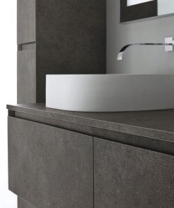 Подвесная база под раковину с двумя выдвижными ящиками. Каркас ящиков изготовлен из металла. База выполнена в отделке из камня. Возможны другие варианты отделки. Раковина заказывается дополнительно
