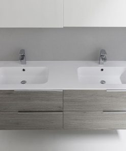 Подвесная база под раковину с четырьмя выдвижными ящиками. Предназначена для двух раковин. Каркас ящиков изготовлен из металла. Возможны другие варианты отделки. Столешница с раковинами заказывается дополнительно