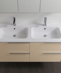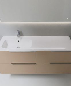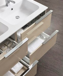 Подвесная база под раковину с четырьмя выдвижными ящиками. Каркас ящиков изготовлен из металла. Возможны другие варианты отделки. Столешница с раковиной заказывается дополнительно