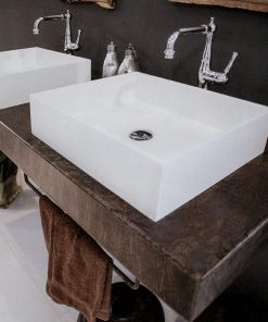 Подвесная база под раковину с 2 держателями для полотенец и 2 раковинами из минерального литья. Возможны другие варианты отделки.