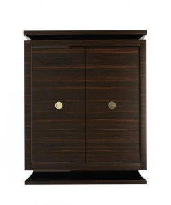 Высокий буфет с двумя распашными дверцами. Оснащён тремя полками. Ручки выполнены из металла. Возможны другие варианты отделки