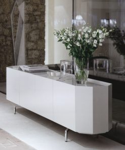 4-х дверный буфет. Столешница выполнена из стекла (белое, серо-коричневое или серое). Внутренние полки выполнены из прозрачного стекла. Цветовые варианты отделки: белый или серо-коричневый.