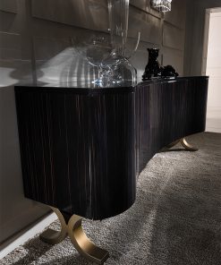 Фигурный буфет с четырьмя распашными дверцами и фигурными металлическими ножками. Дверцы можно обить кожей. Возможны другие варианты отделки и другие варианты ножек. По запросу возможно выполнение в нестандартных размерах