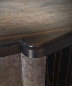 Буфет с четырьмя распашными дверцами и мраморной столешницей. Каркас обит кожей. Рама и ножки выполнены из металла или обиты кожей. Возможны другие варианты отделки и обивки