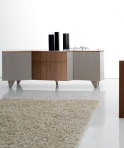 Буфет с двумя распашными дверцами и двумя выдвижными ящиками. Оснащён стеклянными полками. Возможны другие варианты отделки