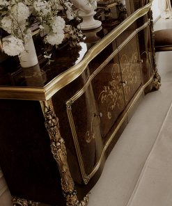Буфет с 4 распашными дверцами. Декорирован инкрустацией и резьбой.