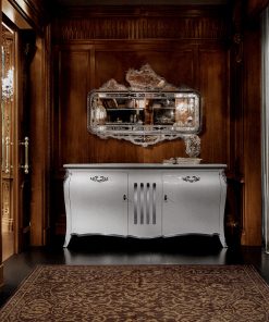 Буфет с двумя распашными дверцами, топ из глянцево-лакированной липы, структура из лакированной липы. Возможны другие варианты отделки.