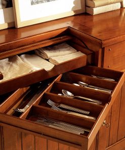 Буфет с 3 распашными дверцами, 2 выдвижными ящиками и 1 лотком для столовых приборов с дверцей-шторой. Возможны другие варианты отделки.