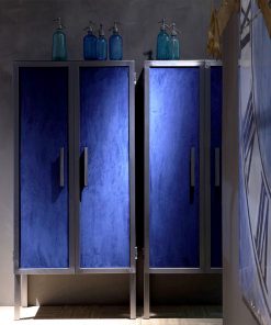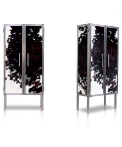 Буфет 2-х створчатый с 2-мя полками внутри. Полки — стекло. Внутри и снаружи обит кожей. Возможны различные варианты отделки