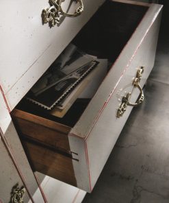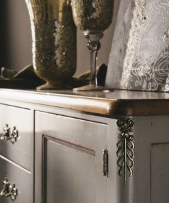 Буфет с двумя распашными дверцами и четырьмя выдвижными ящиками. Декорирован металлическими вставками. Возможны другие варианты отделки