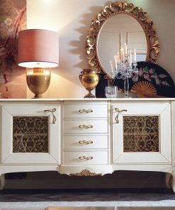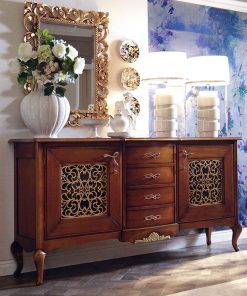 Буфет с 2 распашными дверцами и 4 выдвижными ящиками. Украшен резьбой. Возможны другие варианты отделки.