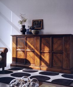 Буфет. Внутреннее оснащение: 1 перегородка, 4 выдвижных ящика, 4 полки. Украшен инкрустацией. Возможны другие варианты отделки.