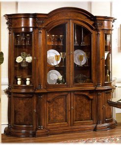 Буфет с 4-мя стеклянными и 4-мя деревянными дверцами, 2 ящика. Полки выполнены из стекла. Декорирован резными элементами. Возможны другие варианты отделки.