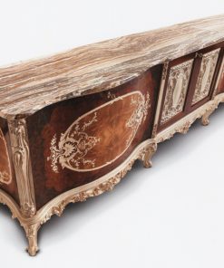 Буфет с шестью распашными дверцами и мраморной столешницей. Декорирован инкрустацией и резьбой. Возможны другие варианты отделки