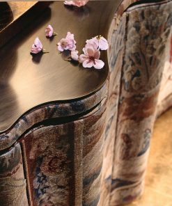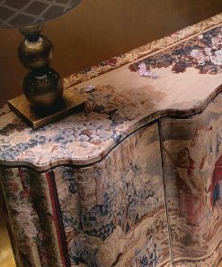 Фигурный буфет с четырьмя дверцами с механизмом открытия push-pull. Декорирован гобеленом