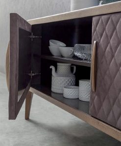 Обитый буфет с 2 распашными дверцами. Возможны другие варианты отделки и обивки.