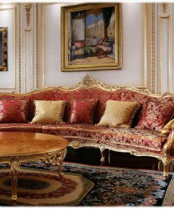 4-х местный полукруглый диван, декорирован резными элементами ручной работы. Наполнение — полиуретан. Возможны другие варианты отделки и обивки.