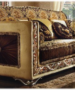 3-х местный диван. Наполнение — полиуретан. Декорирован резными элементами. Возможны другие врианты отделки и обивки.