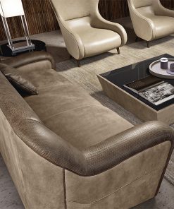 Диван в мягкой обивке. Основание декорировано металлической застёжкой. Возможны другие варианты обивки. Декоративные подушки заказываются дополнительно