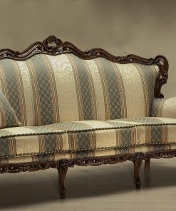 Диван 3-х местный, декорированный резьбой. Наполнение — полиуретан. Возможны другие варианты отделки и обивки, в том числе выполнение в ткани клиента