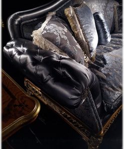 3-х местный диван. Наполнение — полиуретан. Декорирован резьбой ручной работы. Отделка ясень, крашенный в светлый или темный орех. Возможны другие варианты обивки.