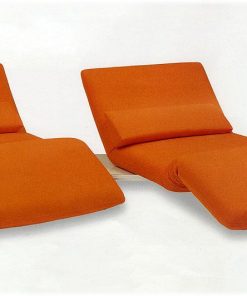 Диван из двух элементов, вращающихся на 360 градусов. Может трансформироваться в 2 односпальные кровати, шезлонг и двуспальную кровать. Обивка — ткань, наполнение — полиуретан. Основание — хромированный металл