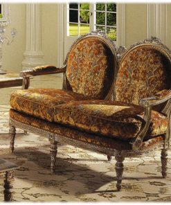 3-х местный диван, подлокотники с мягкими накладками. Наполнение — полиуретан. Декорирован резьбой. Ручная работа. Возможны различные варианты отделки (красное дерево, махагон, охра, декапе и т.д.) и обивки.