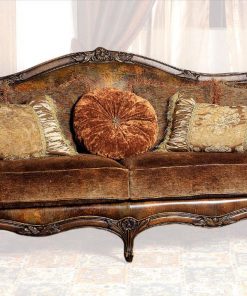 Трёхместный диван с фигурной спинкой. Декорирован резными элементами. Наполнение — полиуретан. Возможны другие варианты обивки и отделки. В дополнение можно заказать декоративные подушки